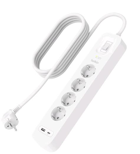 Belkin Socket strip 4-way + USB-A+C,525J,18W,2m
